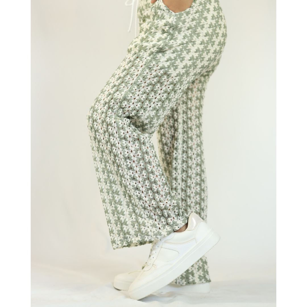 Pantalón a juego con cinturilla cómodo y estilo relajado, que combina comodidad con elegancia.