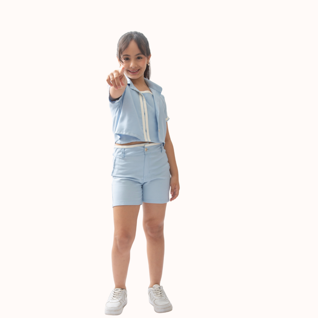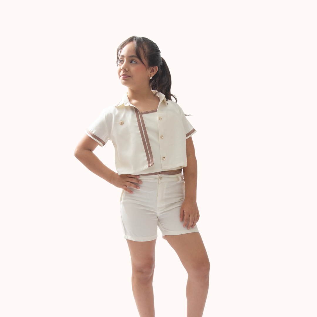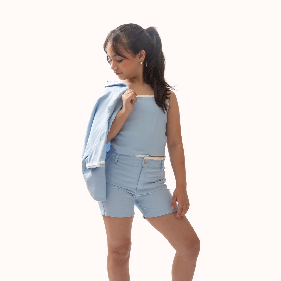 Conjunto de short, blusa y chaleco para niña