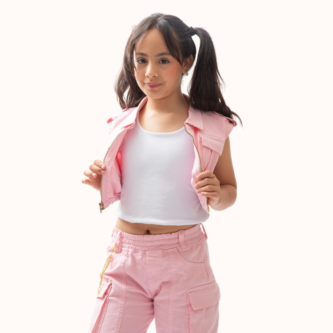 ¡Una pinta súper cool para las princesas! Este conjunto combina un estilo moderno con la comodidad ideal para que jueguen, se muevan y se vean increíbles en cualquier ocasión. Perfecto para looks urbanos y llenos de personalidad.